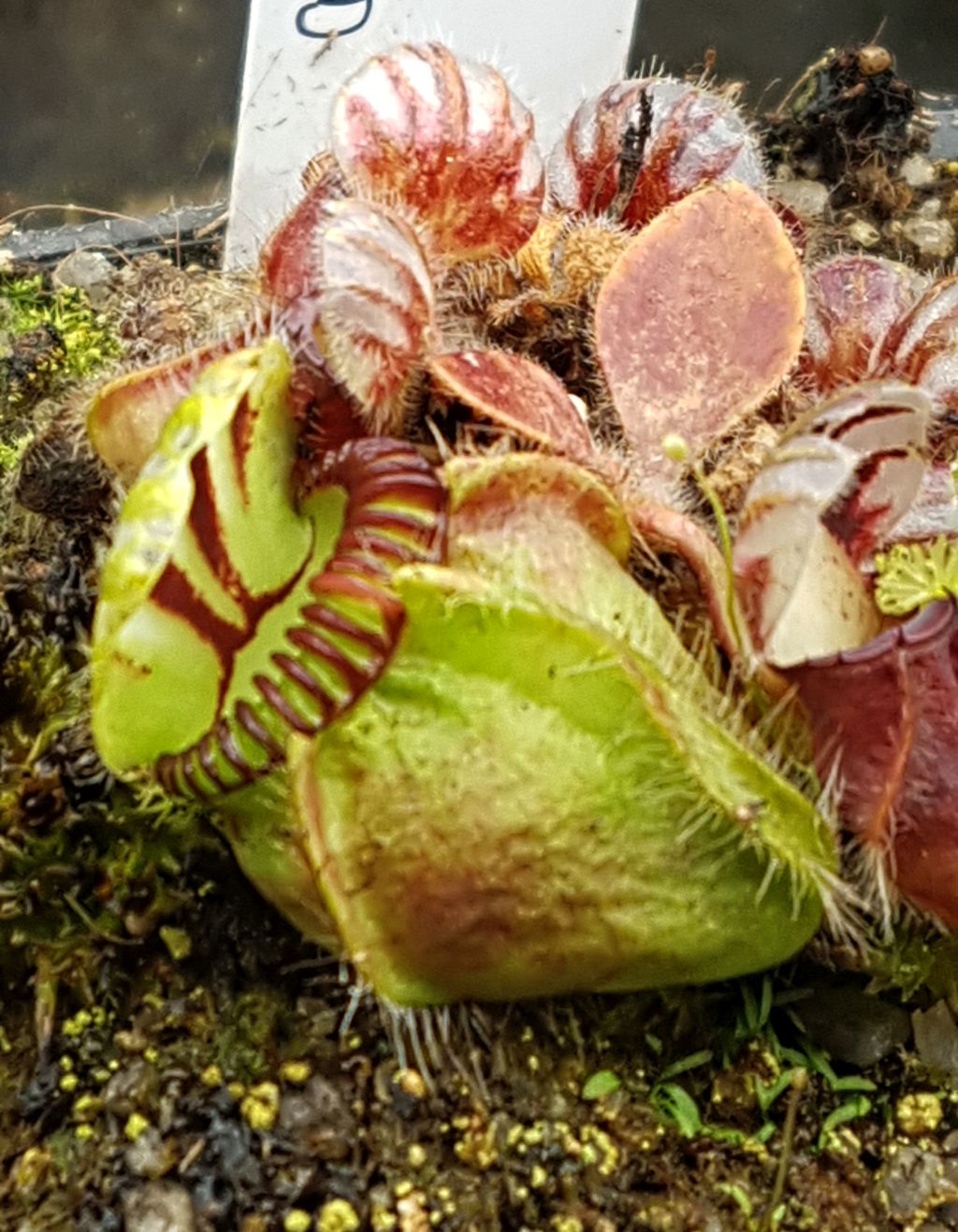 Produktinformationen: Zwergkrug Cephalotus follicularis Klon Dudley Watts, bewurzeltes Teilstück meiner Mutterpflanze, Größe M, im 7x7x10 Vierkanttopf oder im Rundtopf, teilweise nur mit Laubblättern oder nur kleinen Krügen (Artikelbild 1 zeigt eine größere, altere Pflanze des Klons!, Bild 2 die etwaige Größe der Verkaufspflanze)